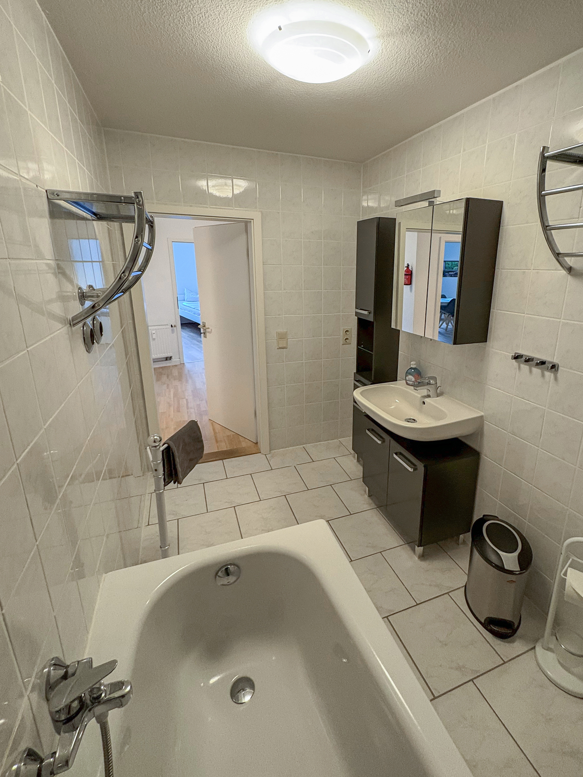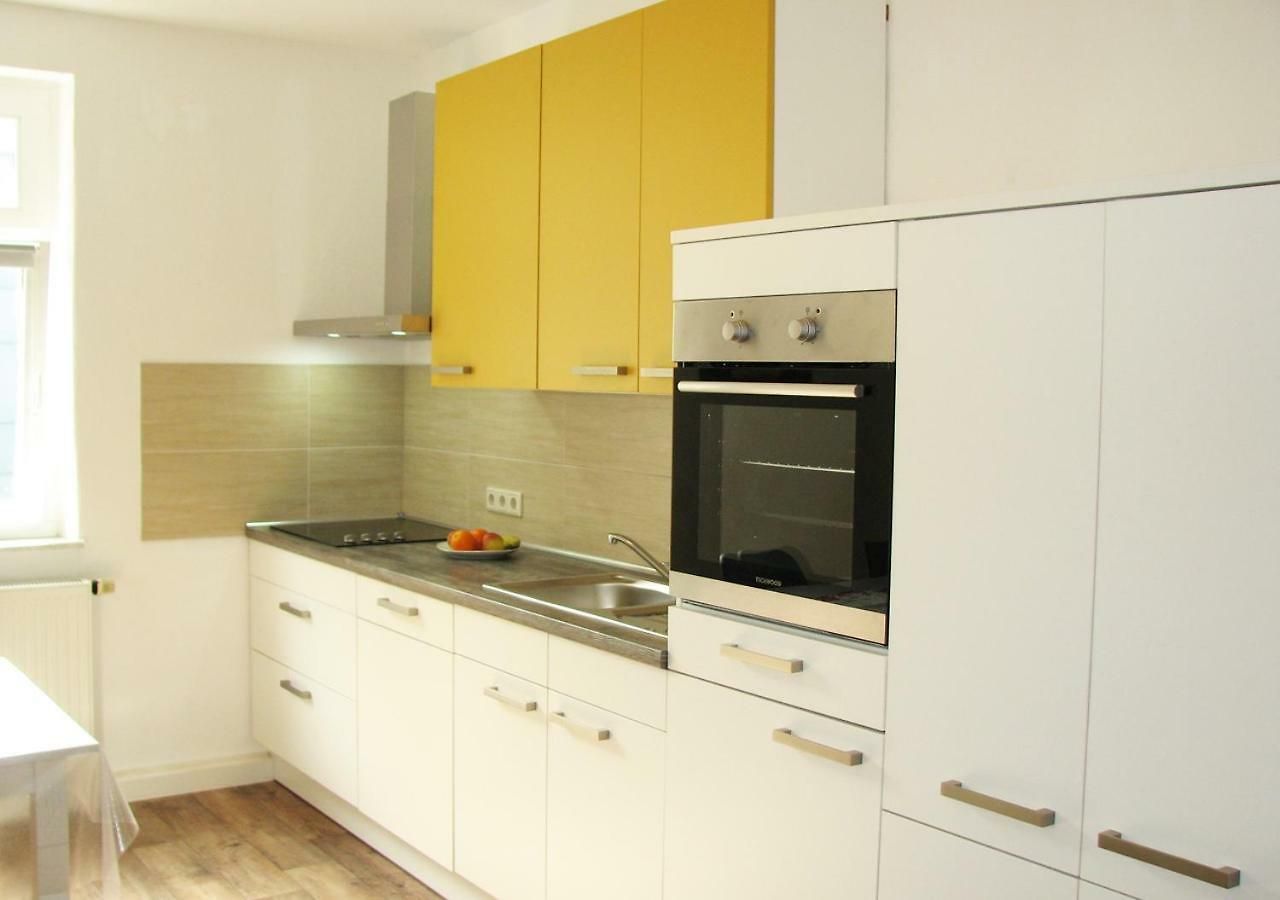Die 80m² große Ferienwohnung im traditionellen Kneip-Kurort Bad Schandau, mitten in der Sächsischen Schweiz, ist perfekt für 5 Personen geeignet. Sie liegt im 2. OG eines historischen, denkmalgeschützten Hauses. Die Küche ist ausgestattet mit Herd, Backofen, Kühl-/Gefrierkombi, Kaffeemaschine, Wasserkocher, Toaster und einem großen Esstisch. Im Wohnzimmer mit TV, befindet sich eine gemütliche Sofa- Ecke. Es gibt zwei Schlafzimmer, eines mit einem großen Doppelbett + Einzelbett und das andere mit zwei Einzelbetten. Im Eingangsbereich sind genügend Abstellmöglichkeiten und Garderobe. Im Bad befindet sich eine Badewanne und WC.