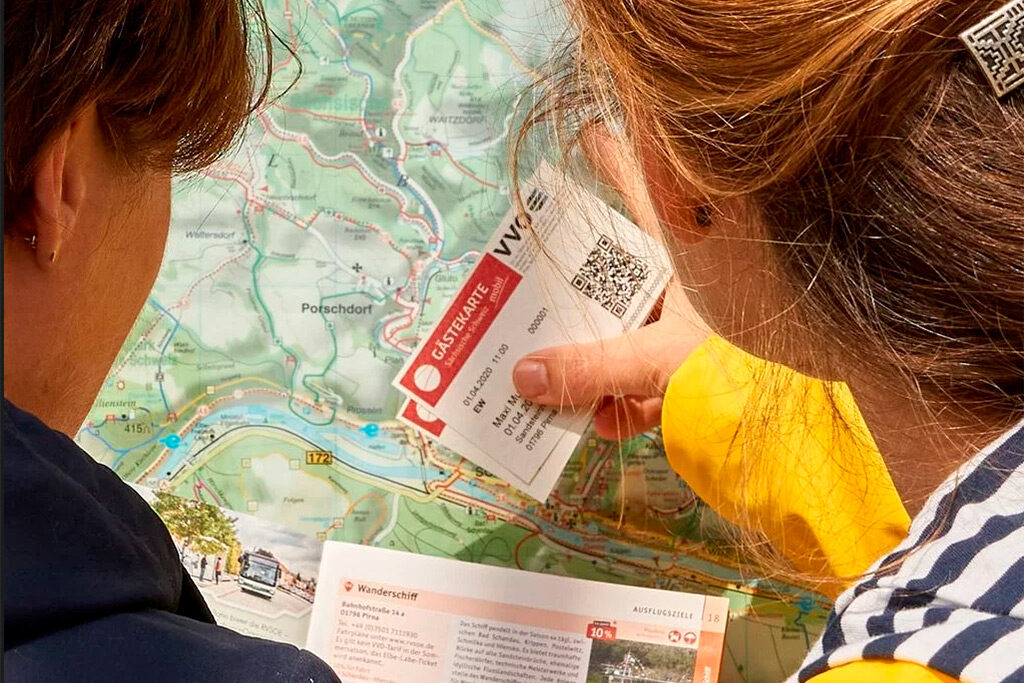 Mit der “Gästekarte mobil” für Bad Schandau können Sie neben zahlreichen Vergünstigungen für Freizeiterlebnisse auch öffentliche Verkehrsmitteln des VVO in der Sächsischen Schweiz kostenfrei nutzen, um die Ausflugsziele in der Umgebung zu erreichen.